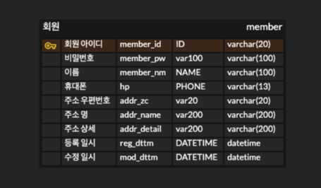 `member_id` varchar(20) NOT NULL,