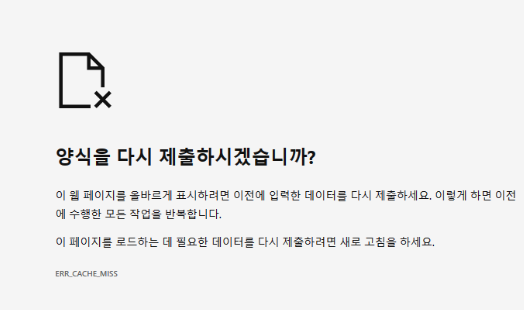 뒤로가기 버튼 클릭 시, 양식을 다시 제출하시겠습니까?